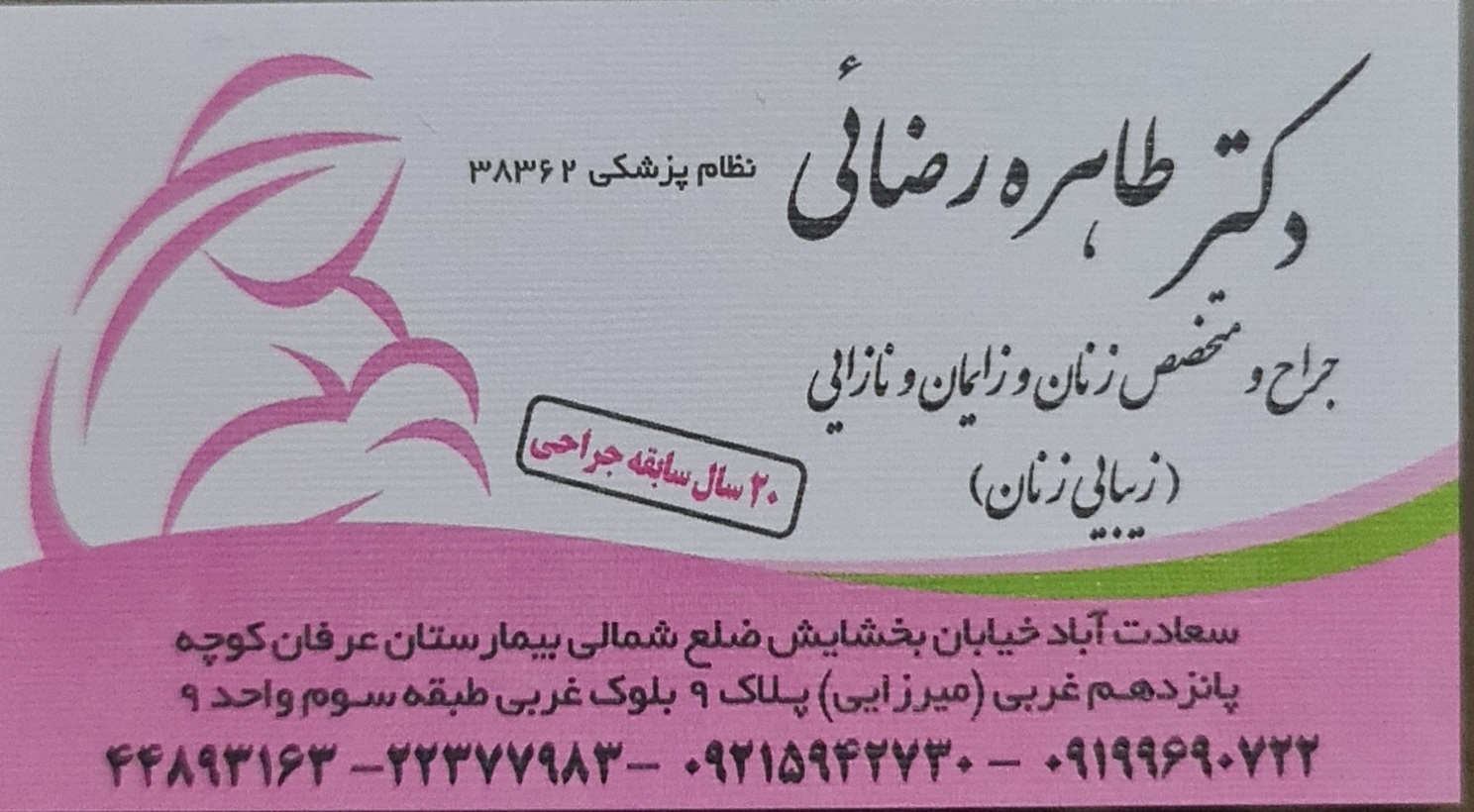 من دکتر طاهره رضایی و خانم دکتر سلما رضوی به همراه همکارانمان از اینکه از سایت ما دیدن میفرمایید متشکریم. نهایت سعی ما همکاری با شما در درمان بیماری یا بدنیا آمدن فرزند نازنین شما خواهد بود. در طول درمان همراه و دوست و محرم شما هستیم. هر نوع عمل جراحی در بیمارستان های تهران: امید، ابن سینا، جم ، انصاری، اقبال،نجمیه، آپادانا و آریا انجام خواهد شد. قرارداد ما با کلیه بیمه ها جهت بستری و انجام انواع جراحی های زنان و زایمان ، زیبایی درمانی، ناباروری و بارداری های پرخطر میباشد. ضمناً کلیه اقدامات کربوکسی، لیزر ، RF ، تزریق بوتاکس و تزریق ژل و چربی در نقاط مختلف بدن در مطب انجام میشود.